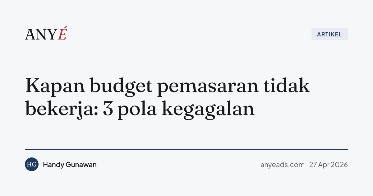 Pertanyaan yang paling sering ANYÉ dengar dari pemilik bisnis Indonesia yang sudah bertumbuh: “kenapa iklan saya tidak menghasilkan?” Pertanyaan keduanya hampir selalu: “haruskah saya naikkan budget?”